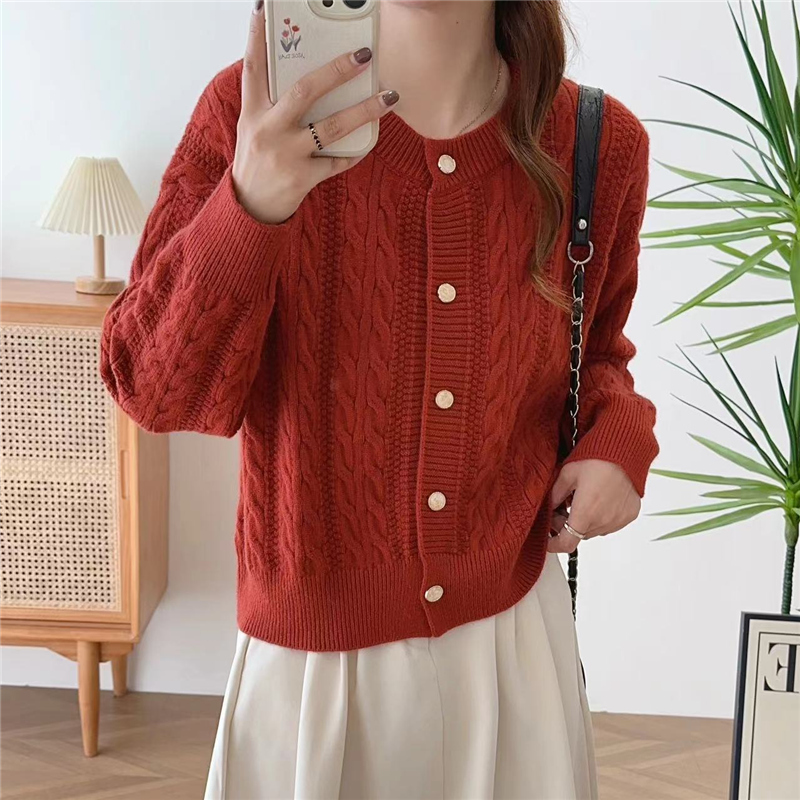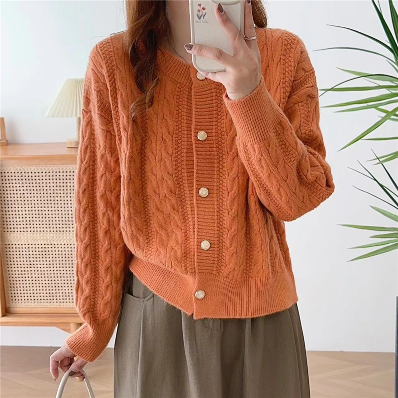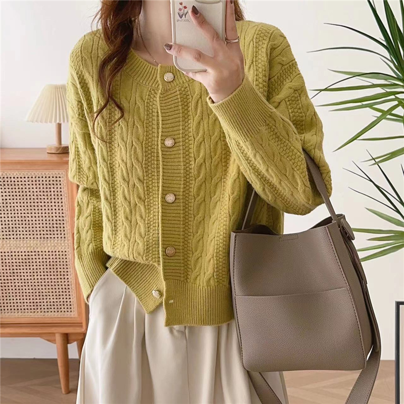 洋气宽松外搭毛衣开衫 女士圆领麻花针织短外套女2025春秋新款 韩版
