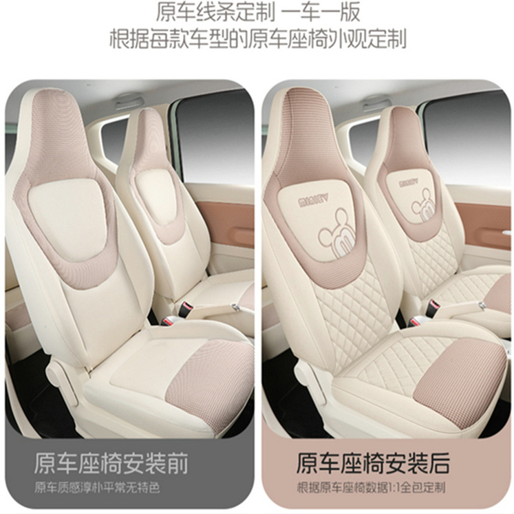 24款 通用卡通座套 五菱miniEV专用座椅套马卡龙第三代棉麻坐垫四季