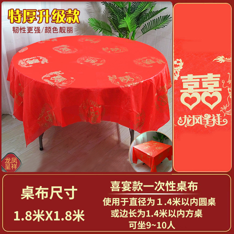 一次性桌布结婚用红色加厚喜事喜字喜庆塑料台布圆桌防水喜宴特厚