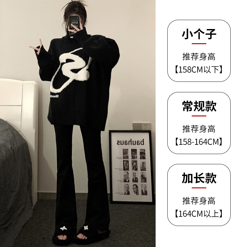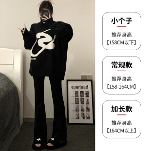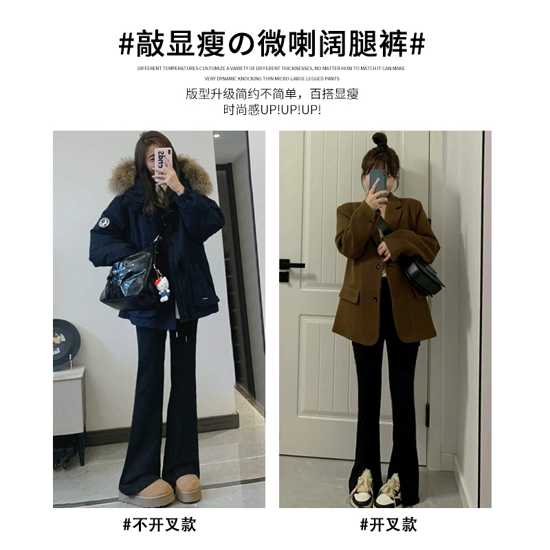 裤 黑色马蹄裤 小个子高腰直筒开叉休闲微喇西装 2025新款 女春秋夏款