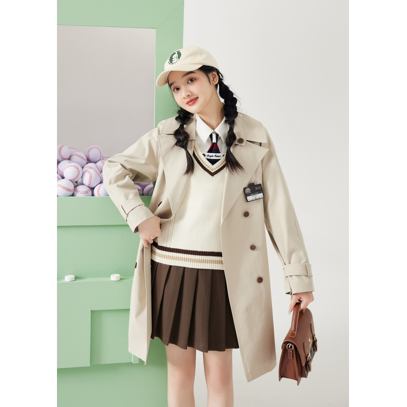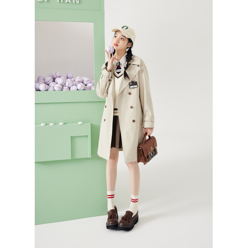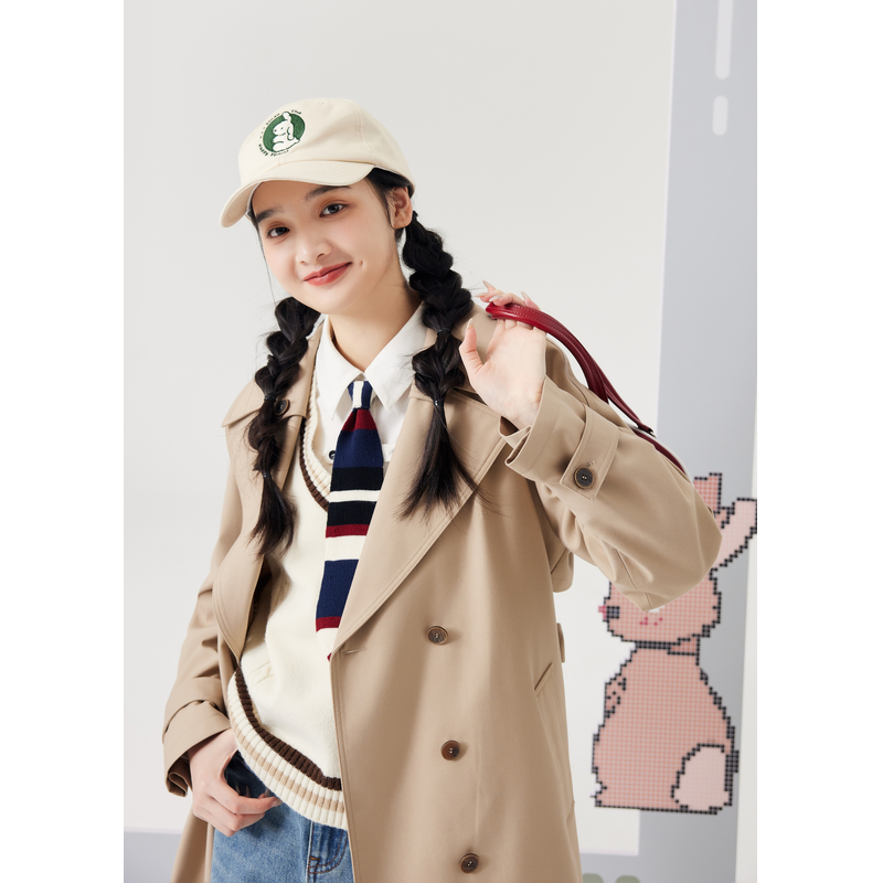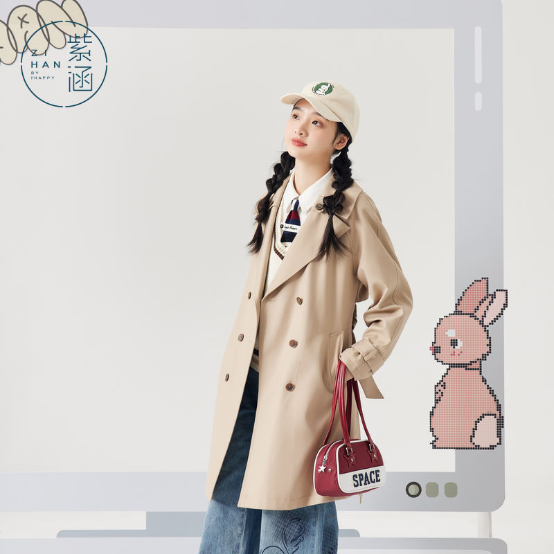 KBNE巴恩风卡其色风衣女小个子2025秋冬新款 气质英伦宽松中长外套