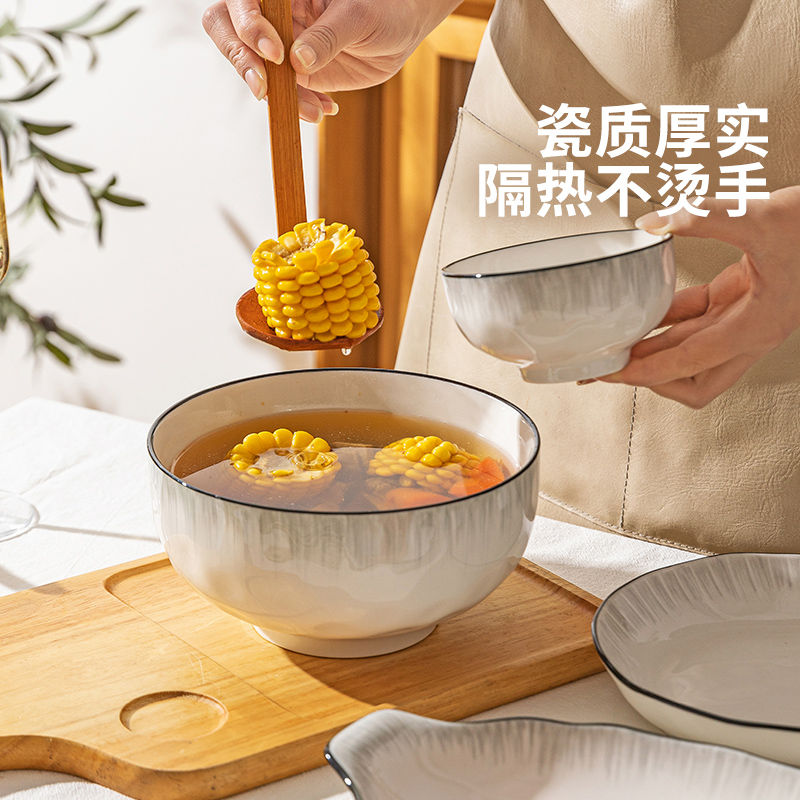优尊陶瓷碗家用2025新款 高颜值轻奢金边餐具吃饭碗面碗圆菜盘组合