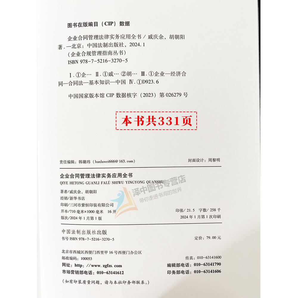 2024新书 中国法制出版 企业合同管理法律实务应用全书 戚庆余 社9787521632705 根据民法典及民法典合同编通则司法解释编写 正版