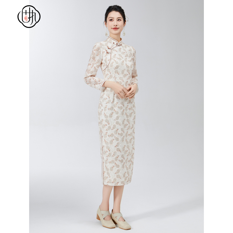 菲梦伊原创钉珠提花连衣裙女秋季 国风高端气质贵妇旗袍裙子 新中式