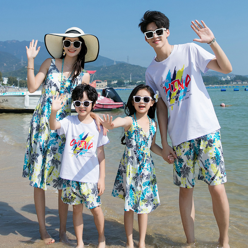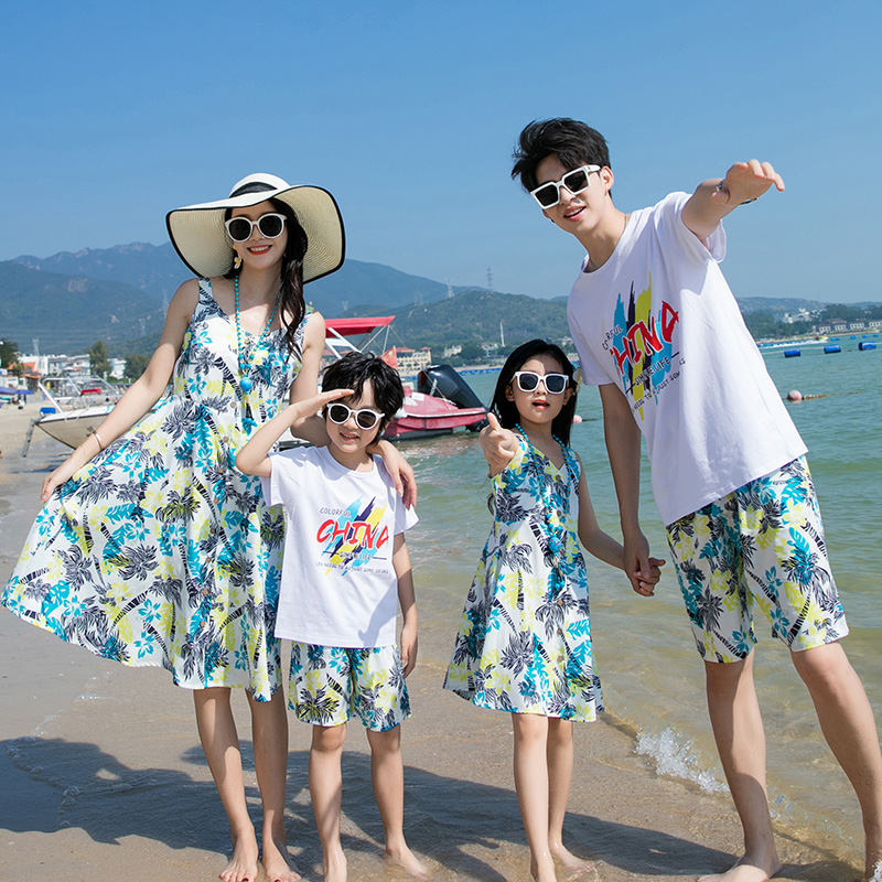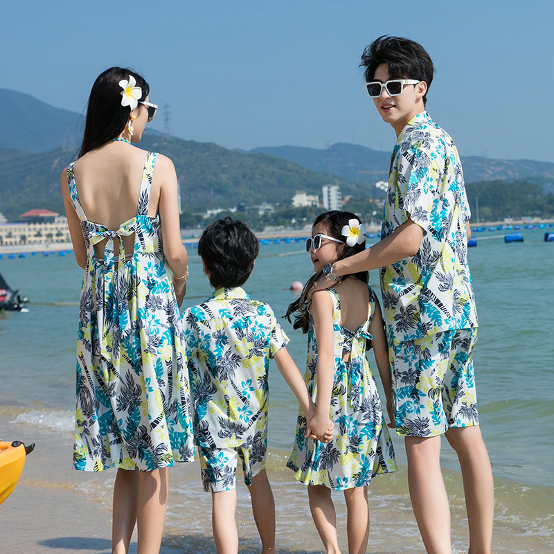 母子母子休闲度假旅游海边拍照花衬衫 沙滩亲子装 一家三口四口夏装