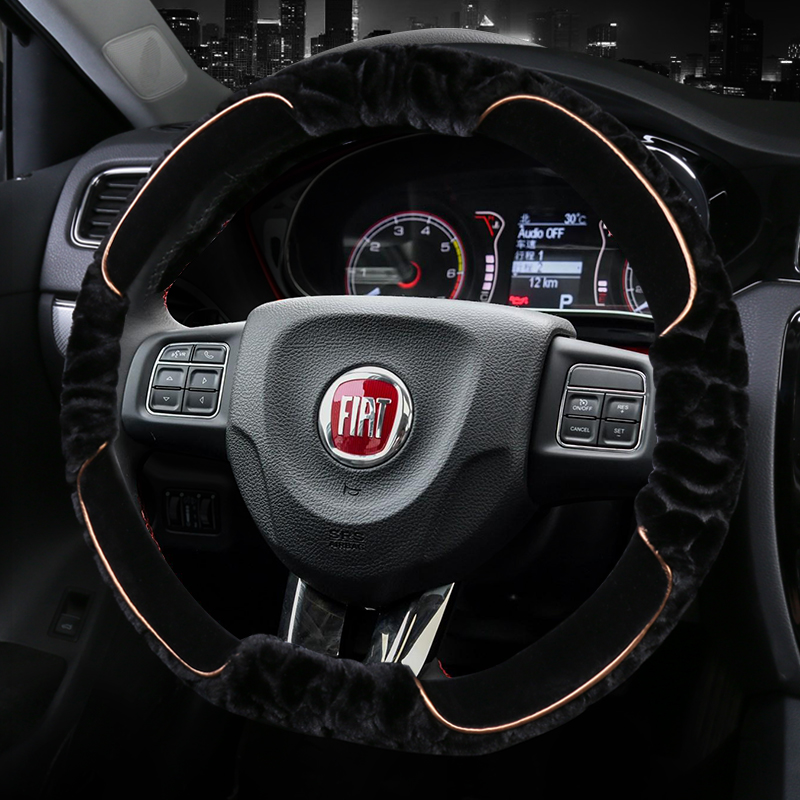 菲亚特方向盘套专用菲翔致悦道奇酷威菲跃博悦汽车把套冬季 短毛绒
