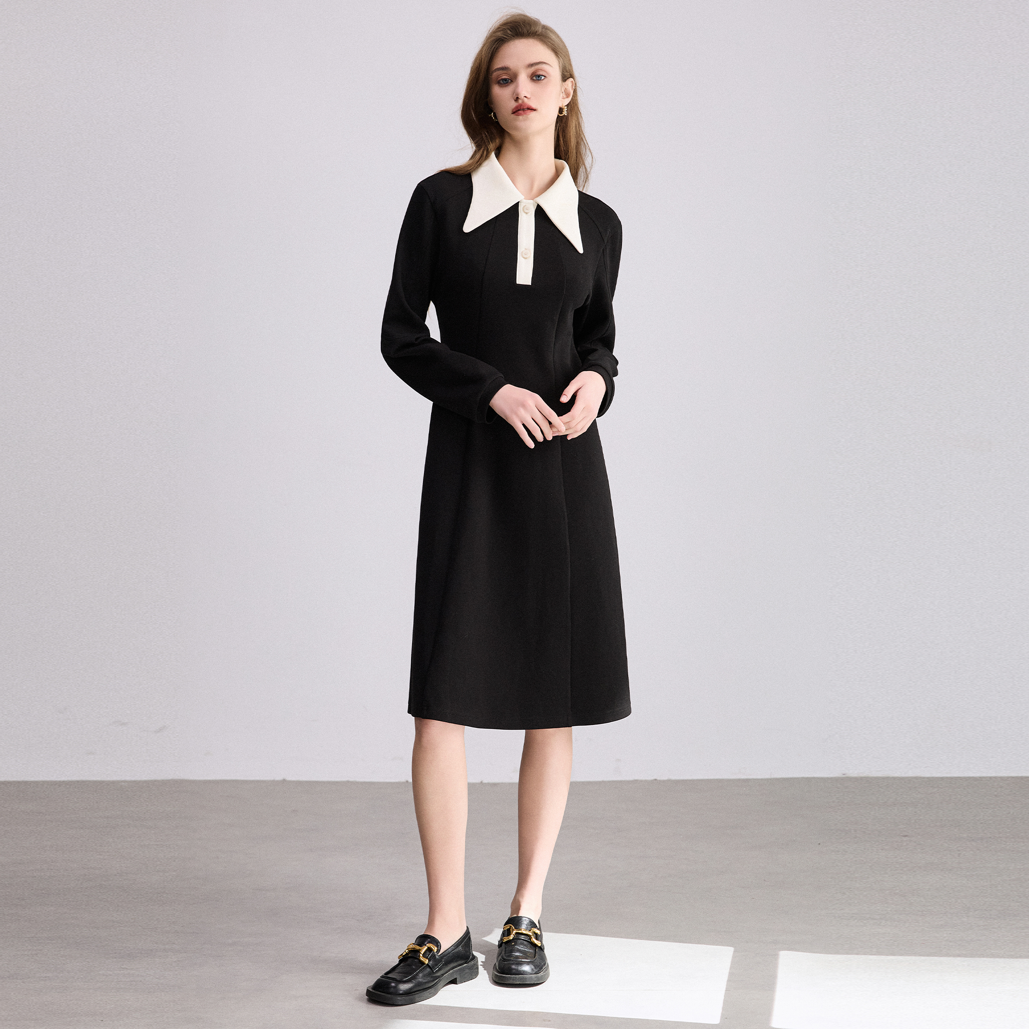 SNIDEL秋冬款 长裙翻领露肩针织连衣裙SWCO245060 气质修身