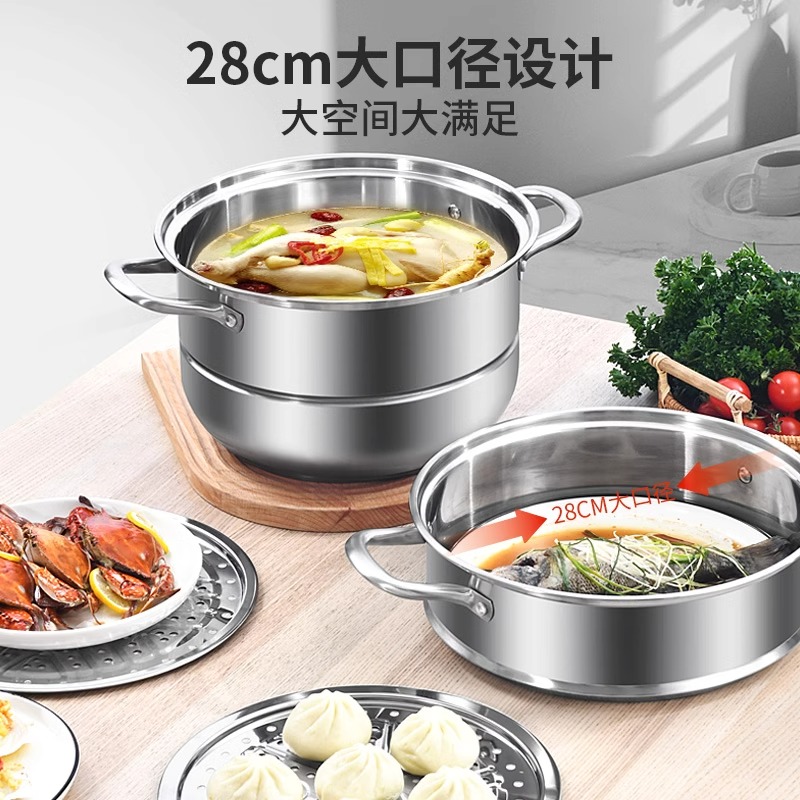 加厚不锈钢商用大蒸锅汤锅蒸桶带盖卤水锅烧水桶蒸包蒸海鲜多层桶