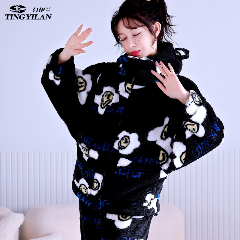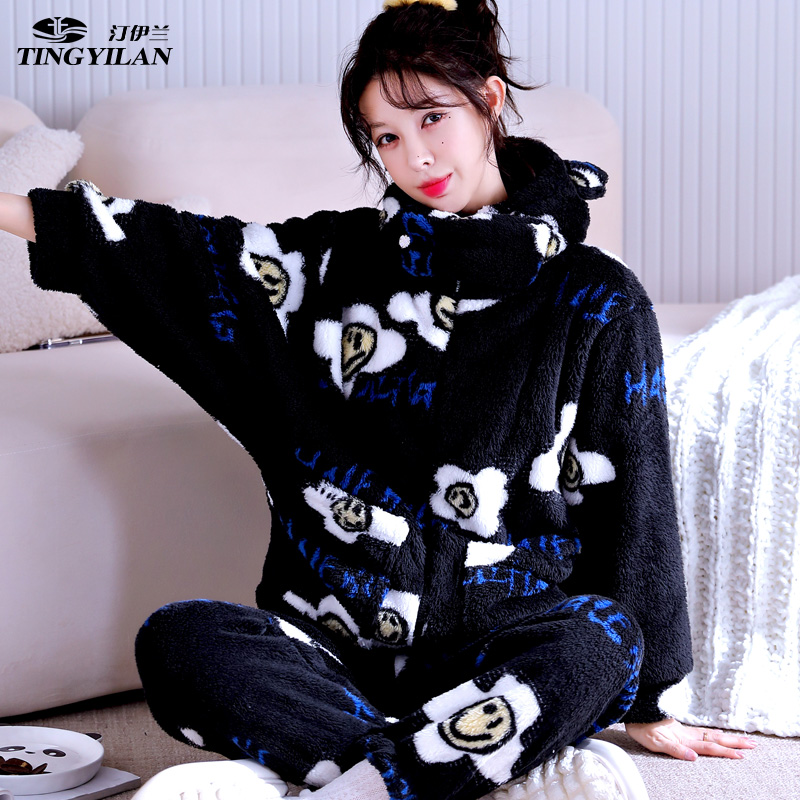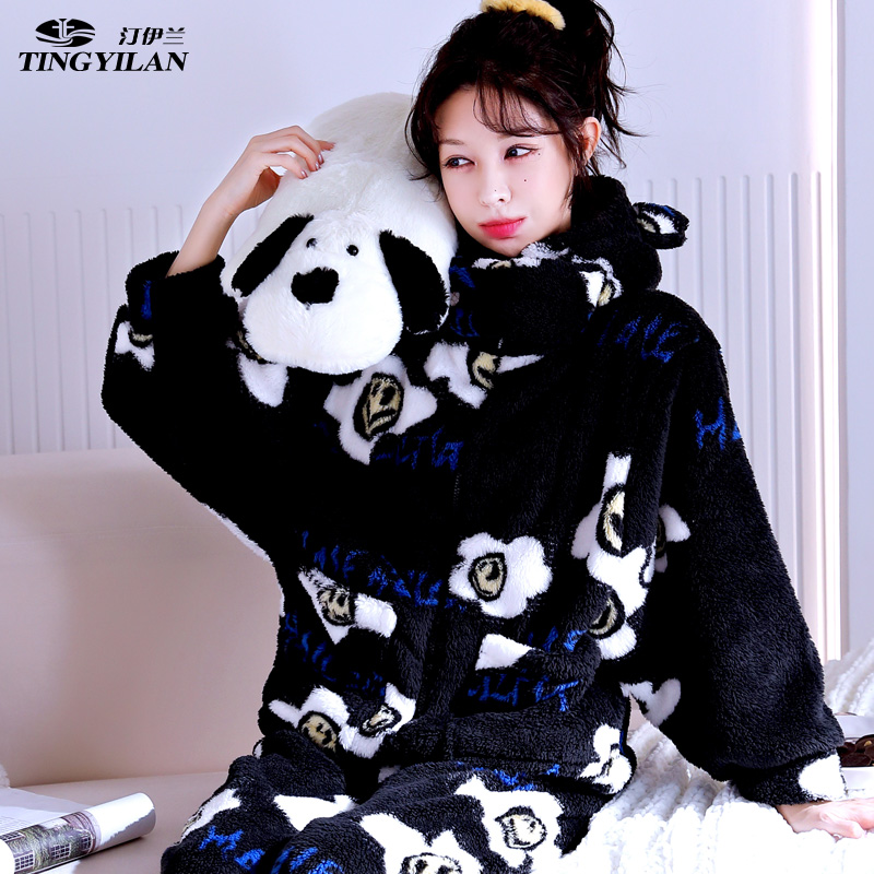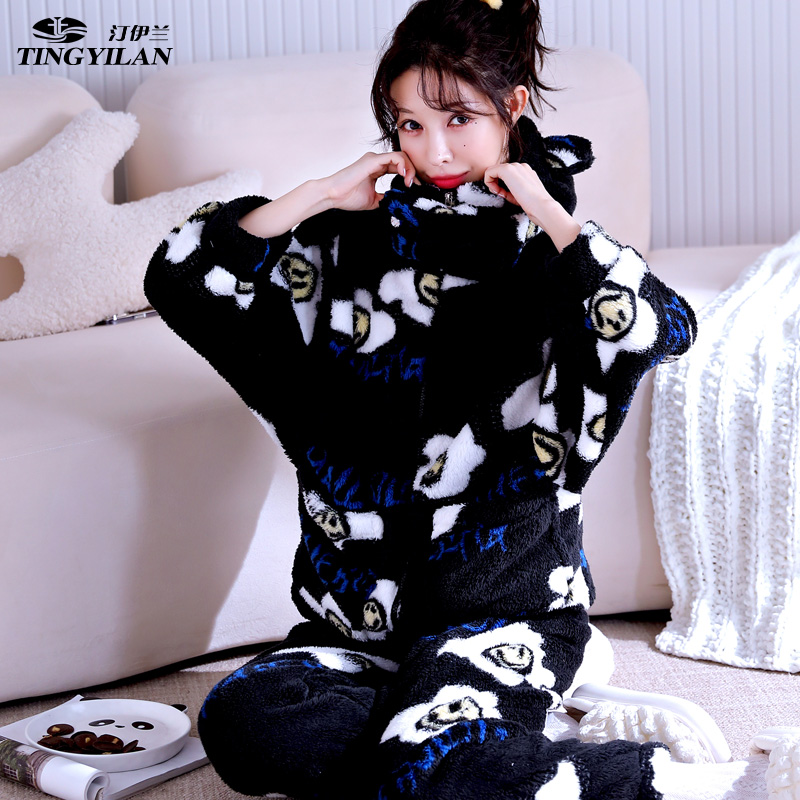 家居服套装 汀伊兰品牌法兰绒珊瑚绒睡衣女加厚可爱外穿长袖 冬季