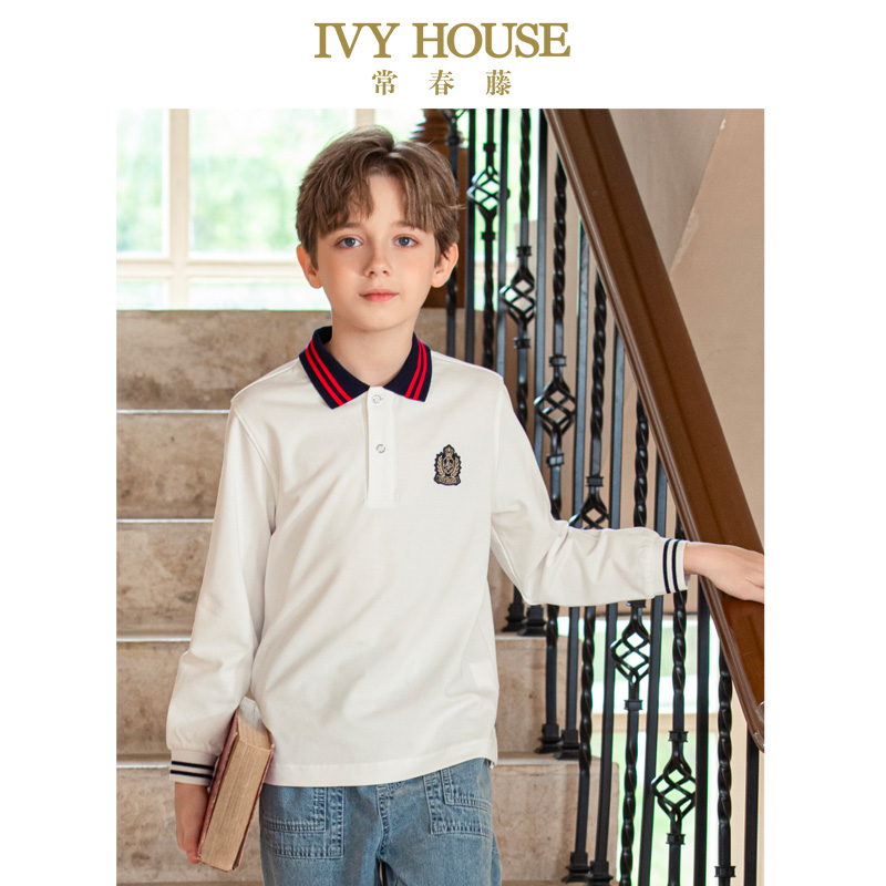 HOUSE常春藤儿童装 POLO衫 男童春季 条纹长袖 T恤网眼透气 新款 IVY