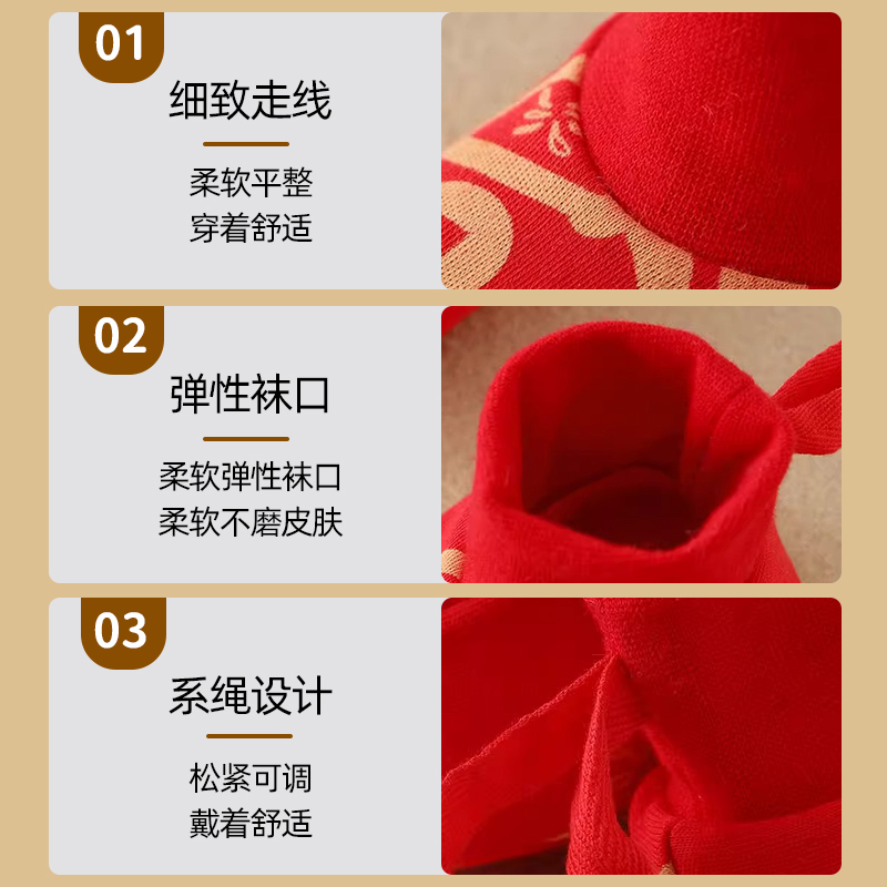 婴儿袜子红色0一3月宝宝新生儿冬季 春秋a类 纯棉胎袜6一12月鞋