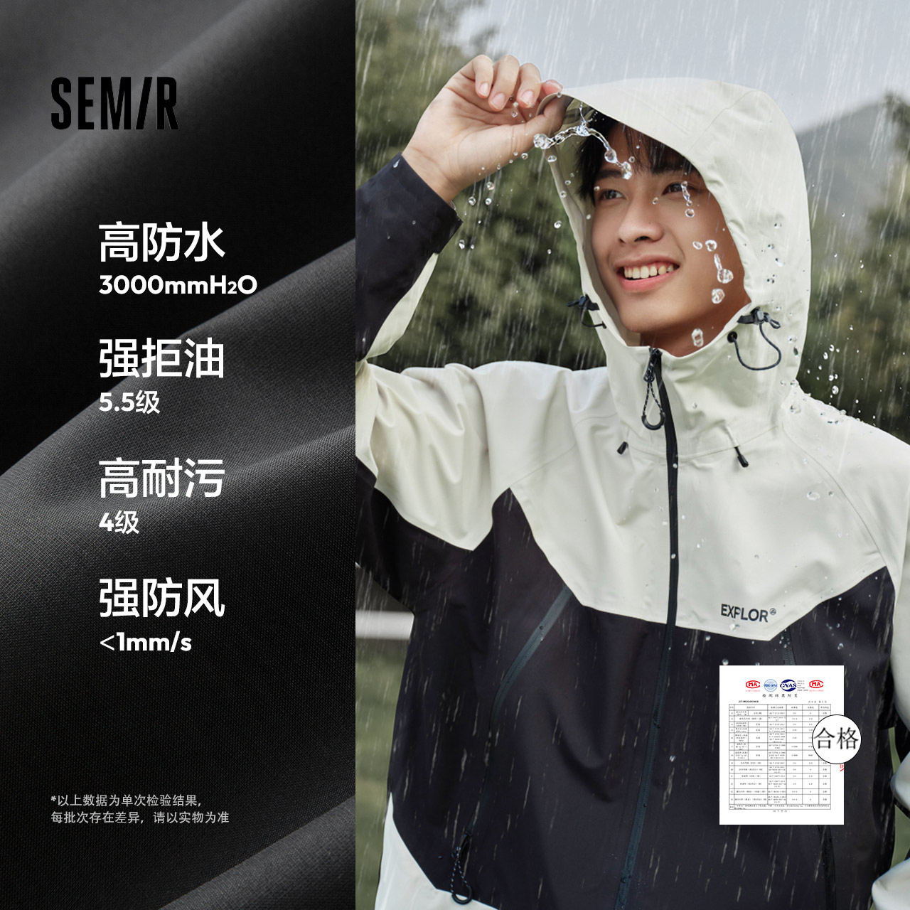 上衣 户外风三防情侣冲锋衣连帽夹克插肩袖 森马外套男2025秋季 新款