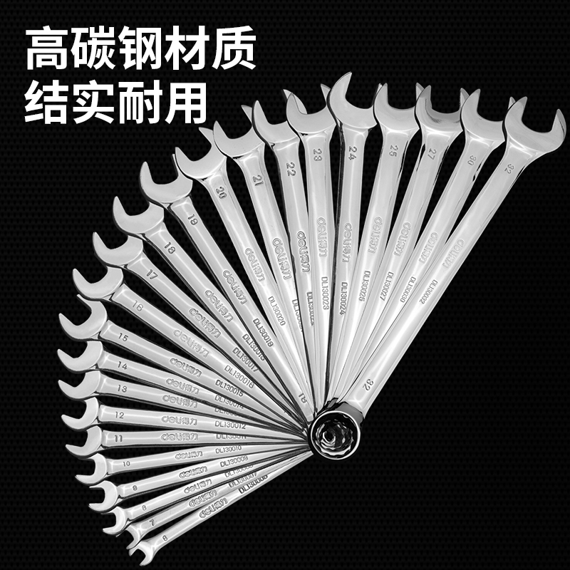 得力两用扳手梅花开口板子镜面多功能呆扳手工具套装 汽车维修扳手