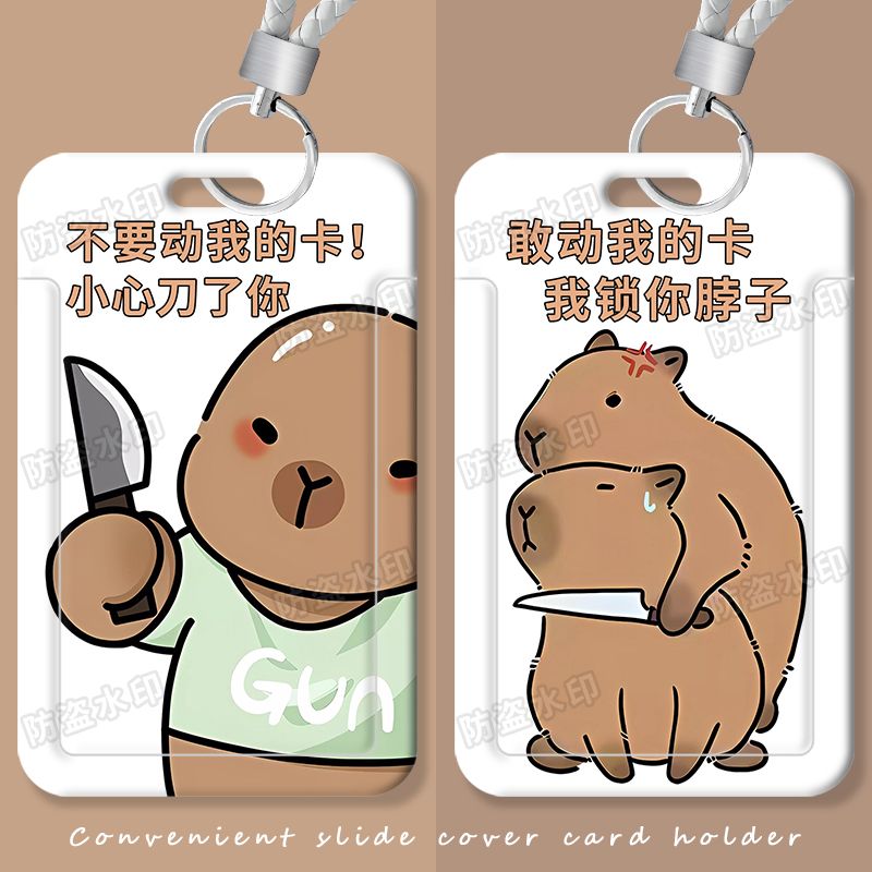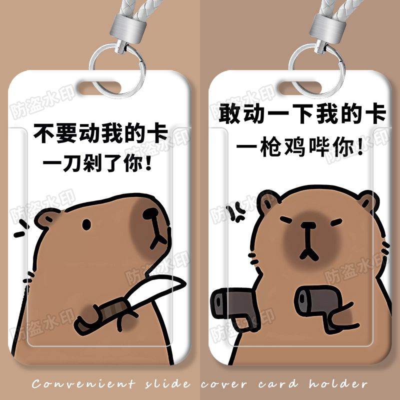 卡皮巴拉水豚可爱滑盖卡套学生饭卡公交地铁卡套身份证透明套挂绳