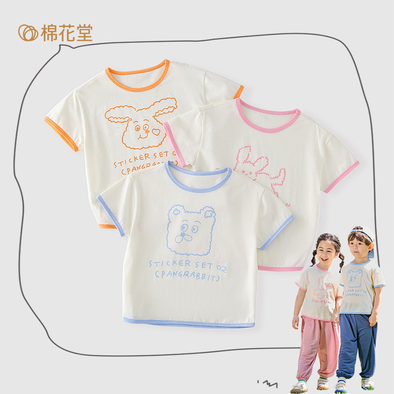 男童上衣女童衣服儿童裤 棉花堂宝宝t恤防蚊裤 夏装 薄款 子T恤 短袖