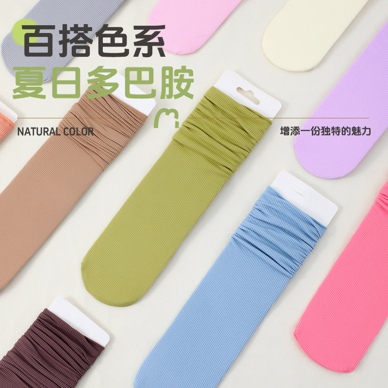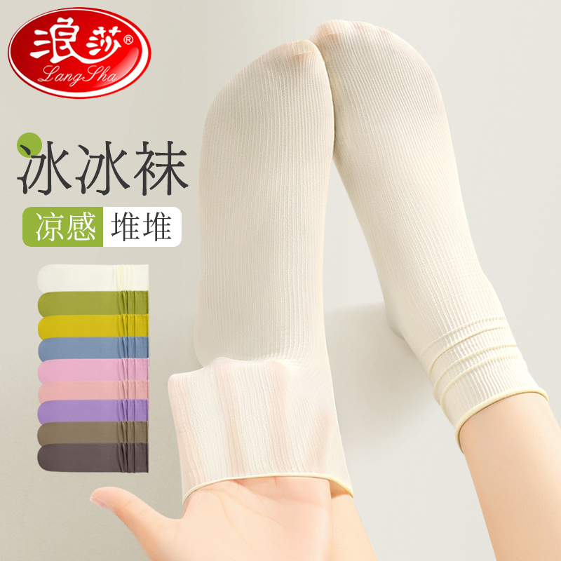 中筒月子袜 无骨白色配小皮鞋 浪莎凉感冰冰袜子女士堆堆袜夏季 薄款