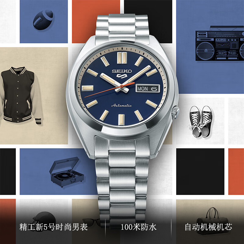 运动防水钢带机械男表SRPK87K1 SEIKO精工手表男新5号时尚 自营