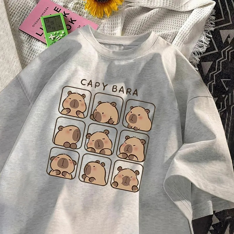 夏季 t恤情侣装 宽松上衣 300斤纯棉港风chic卡皮巴拉印花短袖 特大码
