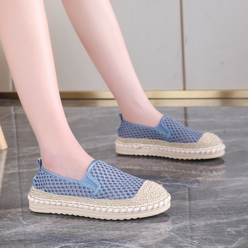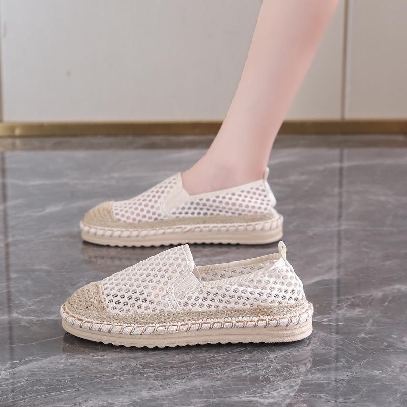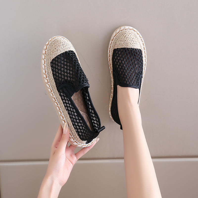 老北京布鞋 小香风渔夫鞋 一脚蹬孕妇配裙子凉鞋 网面透气网鞋 女夏季