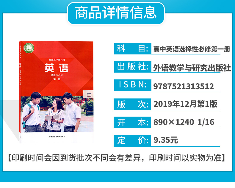 新版 高中人教版 语文数学物理化学 英语选择性必修一全套5本教材教科书 全新正版 外研版 高中选修一1全套课本 天津地区适用