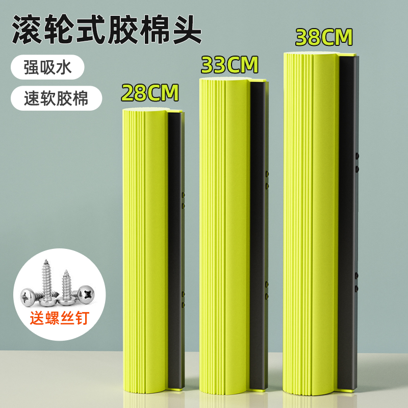 美添乐对折式 胶棉头海绵头替换头通用吸水拖布头 胶棉头滚轮式