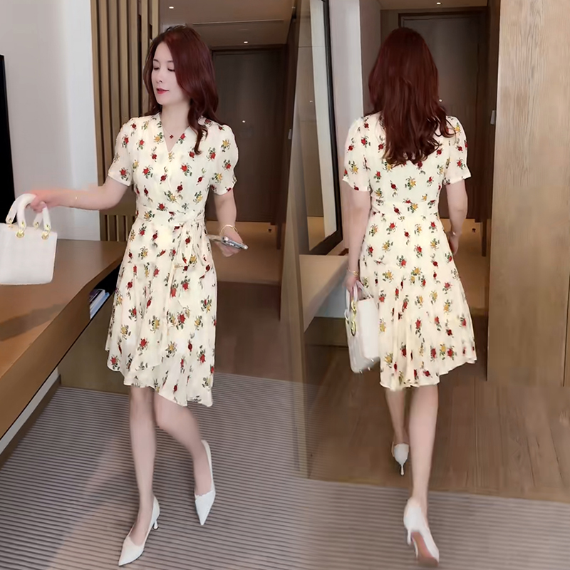 雪纺连衣裙女高腰印花茶歇裙FR113 COCOBELLA度假风长袖 折扣季