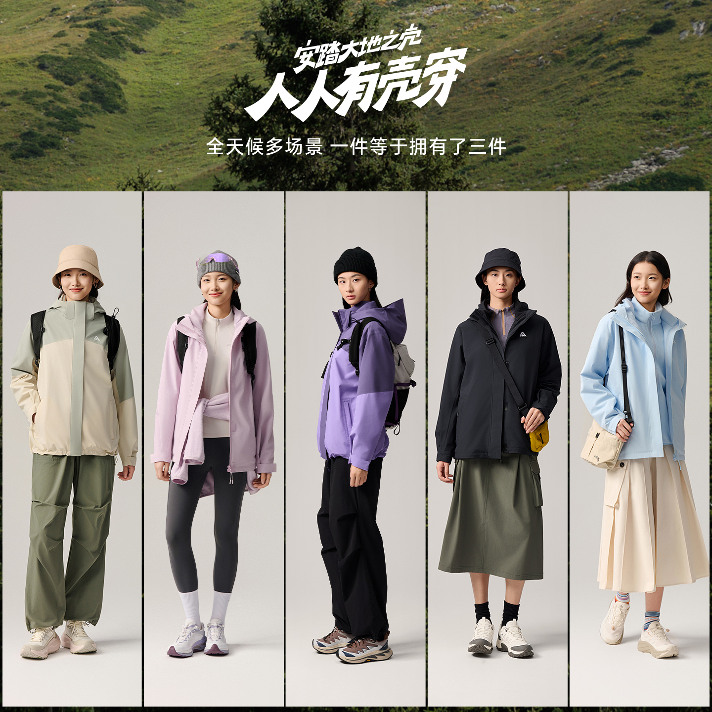 安踏水壳冲锋衣 大地之壳3.0三合一女户外硬壳防水防风登山外套