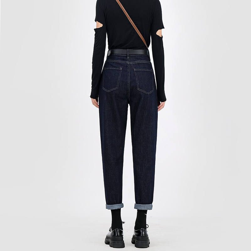 丹宁蓝色防褪色高腰显瘦直筒裤 女2025年春秋新款 子 阔腿牛仔裤 窄版