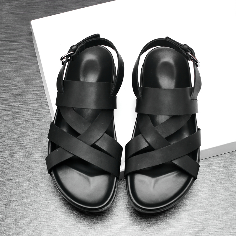 牛皮凉鞋 外穿凉拖鞋 2025夏季 休闲镂空透气平底沙滩鞋 子 新款 男士