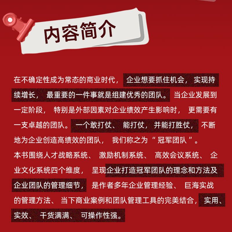 4大系统企业管理 4大系统轻松带团队打造企业铁军进阶指南领导力法则带领团队打胜仗 打造冠军团队 带领团队打胜仗