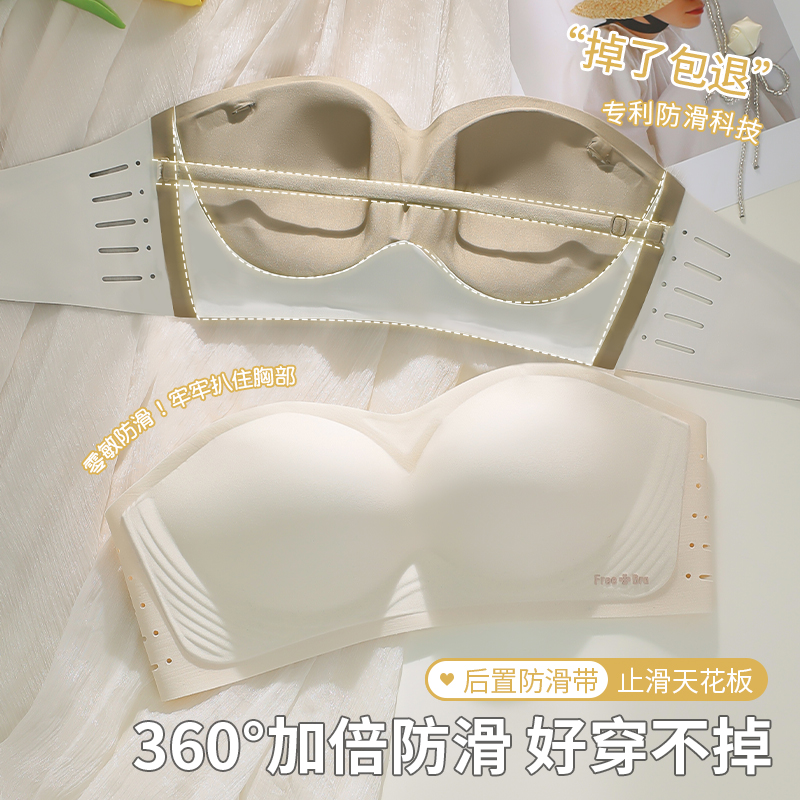 抹胸内衣女无肩带防滑聚拢小胸无痕隐形夏季 裹胸美背防走光文胸罩