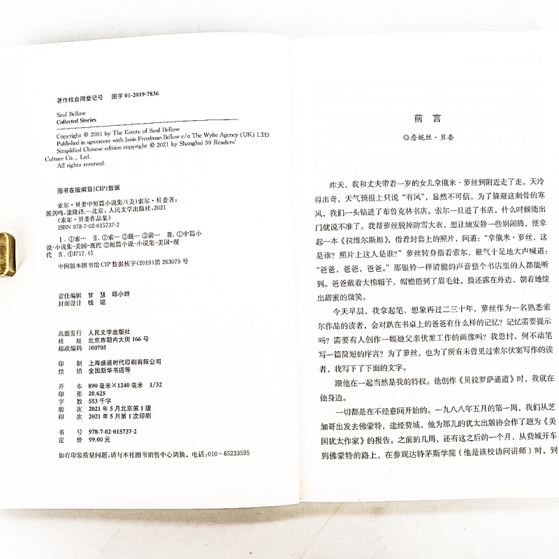 索尔·贝娄作品集 9787020157372 人民文学出版 社 书籍 索尔·贝娄中短篇小说集 正版 蒲隆翻译