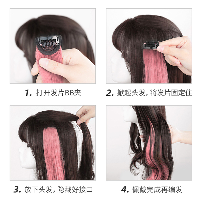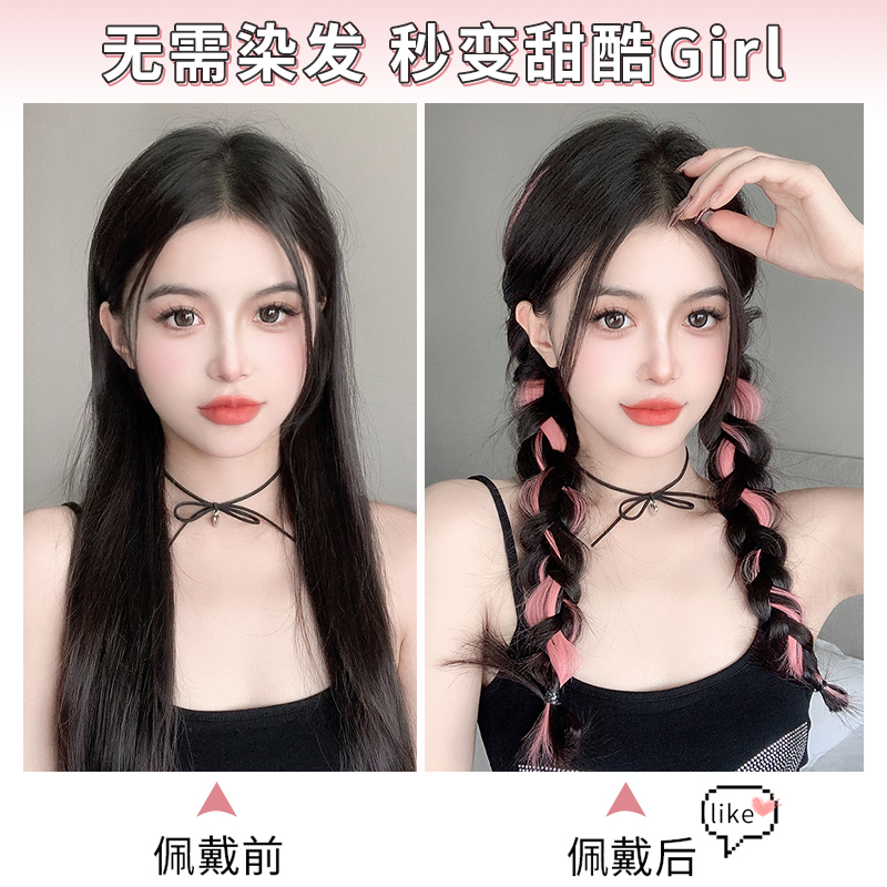 挑染假发片辣妹多巴胺彩色挂耳染长卷发无痕编辫子神器粉色接发条
