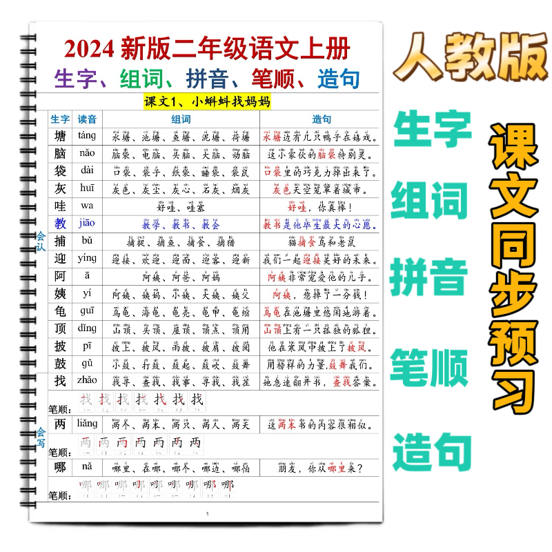 语文生字组词拼音造句小学笔顺写字识字 课文同步一二年级上下册生字拼音笔顺组词造句预习复习注音款 2024最新 人教版