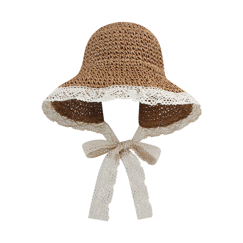 日系UV防紫外线平沿平顶草编小礼帽优雅蝴蝶结夏天遮阳防晒帽子女