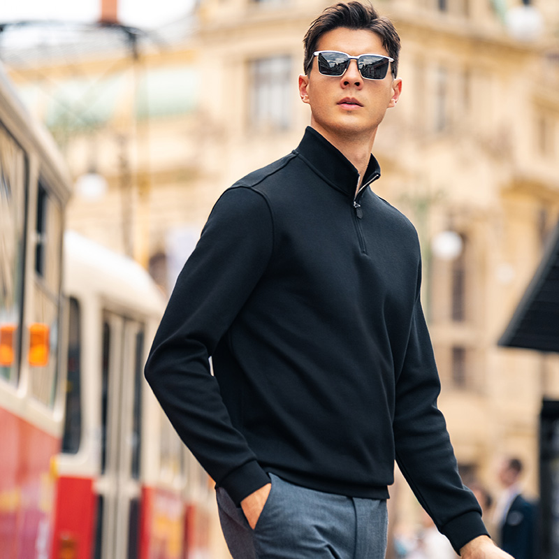 蕉下男士 t恤透气高弹速干衣百搭休闲户外排汗运动卫衣 半拉链长袖