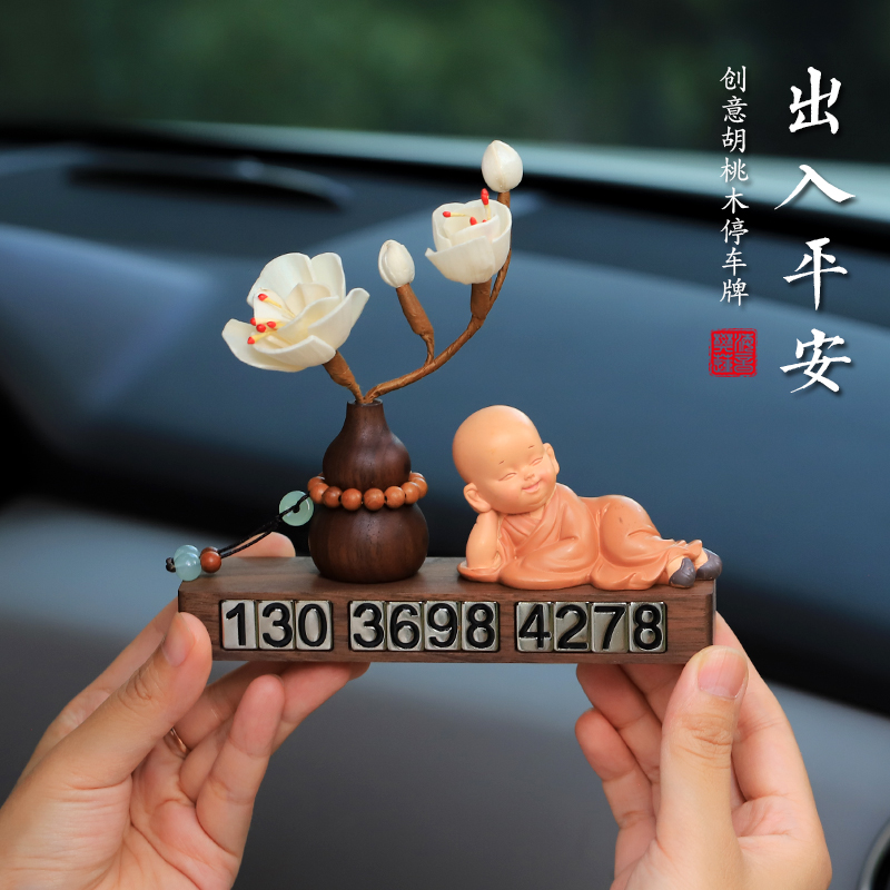 创意平安小和尚挪车电话牌临时停车号码 饰 牌汽车内饰品车上车载装