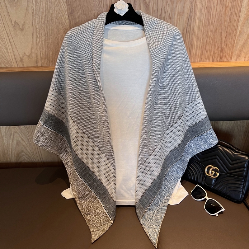 小灰格子围巾女夏季 防晒大方巾出游拍照丝巾空调房外搭披肩女 新款