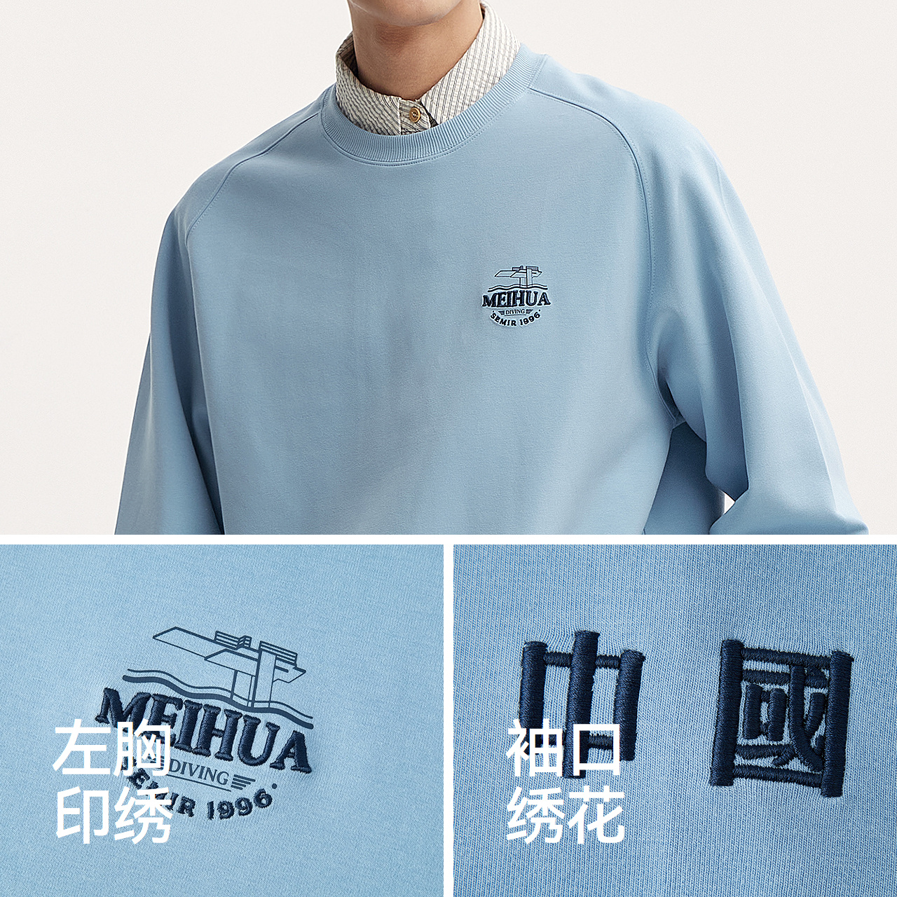 插肩袖 森柔棉 森马梅花系列卫衣男重磅圆领上衣国潮绣花情侣秋装