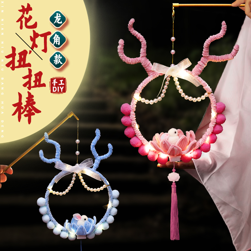 中秋节手工灯笼diy材料包儿童幼儿园扭扭棒龙角宫灯手提古风花灯