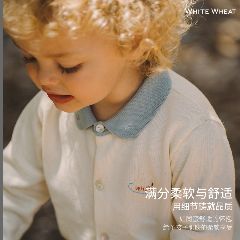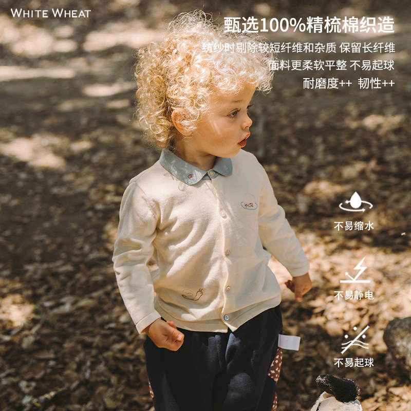 棉纱上衣女孩针织衫 毛衣男宝宝春秋季 新款 whitewheat儿童2025秋装