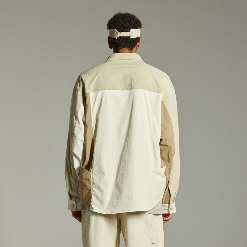 日系复古拼接撞色情侣衬衣 男秋 古由卡GuukaTech户外休闲长袖 衬衫