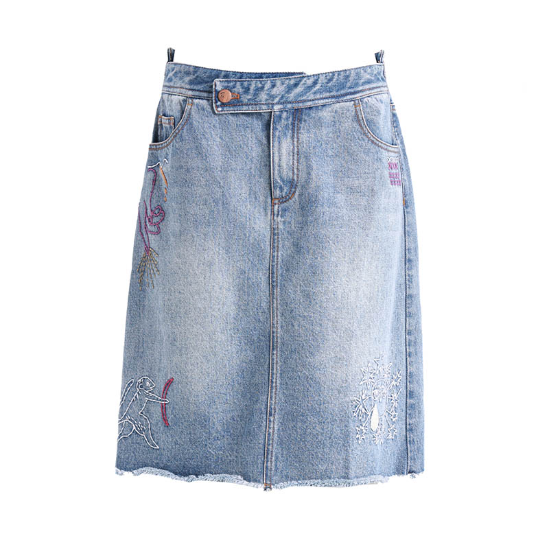 浅牛仔裙子个性 牛仔半裙复古毛边女装 刺绣女裙 新品 非鱼2024秋季