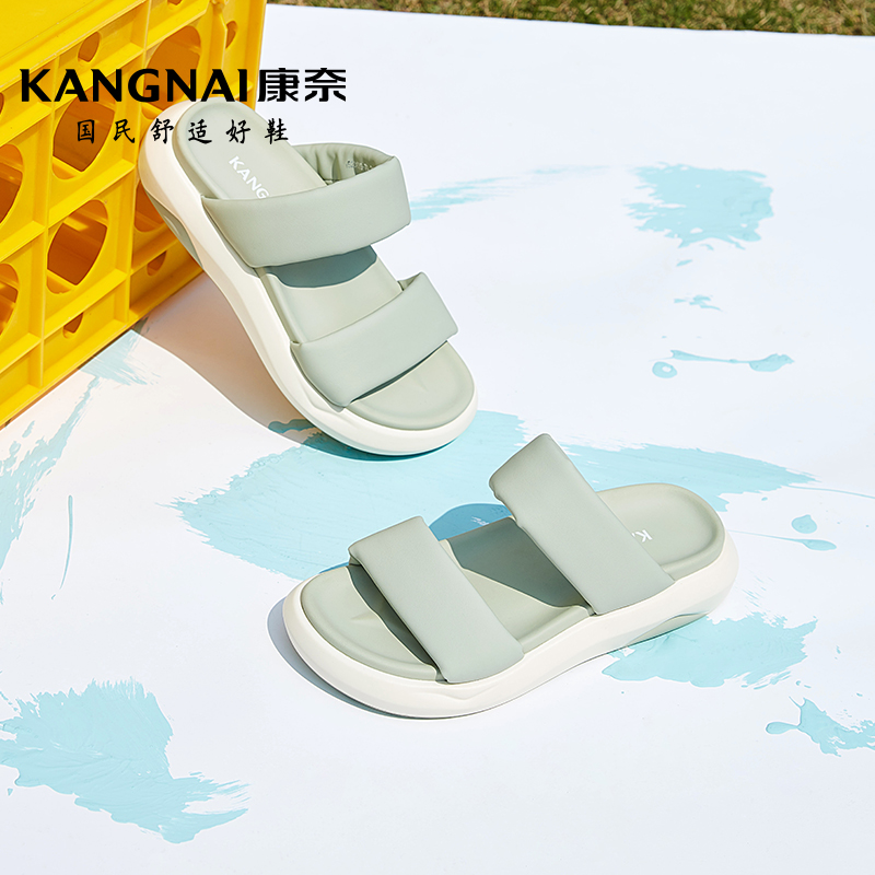 纯色休闲百搭凉拖鞋 康奈女鞋 踩屎感软底外穿一字拖女款 新款 夏季
