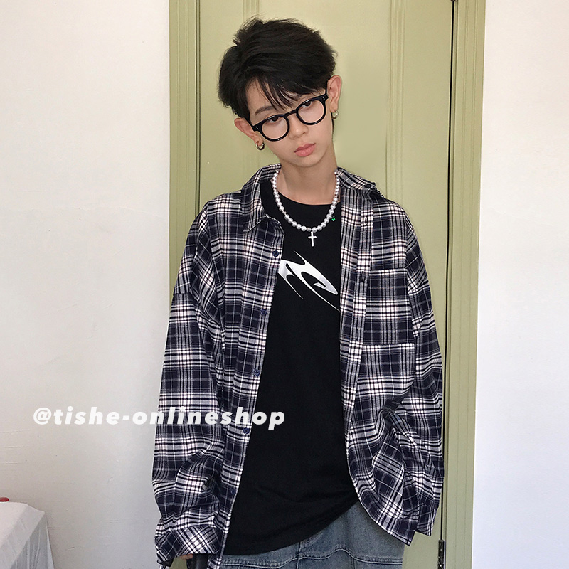 加绒加厚百搭高级感痞帅初中生 外套男春秋新款 青少年牛仔长袖 衬衫