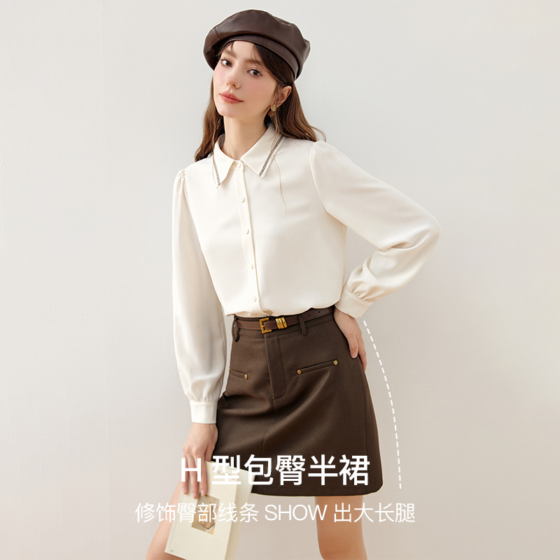 a字裙气质黑色半身裙百搭秋新款 复古法式 裙子 朗姿Basic衣橱