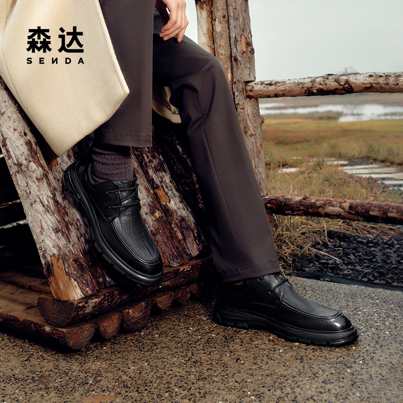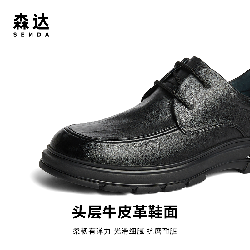 百丽男鞋 大头休闲德比鞋 冬季 厚底增高皮鞋 A1434AM4 新款 张凌赫同款