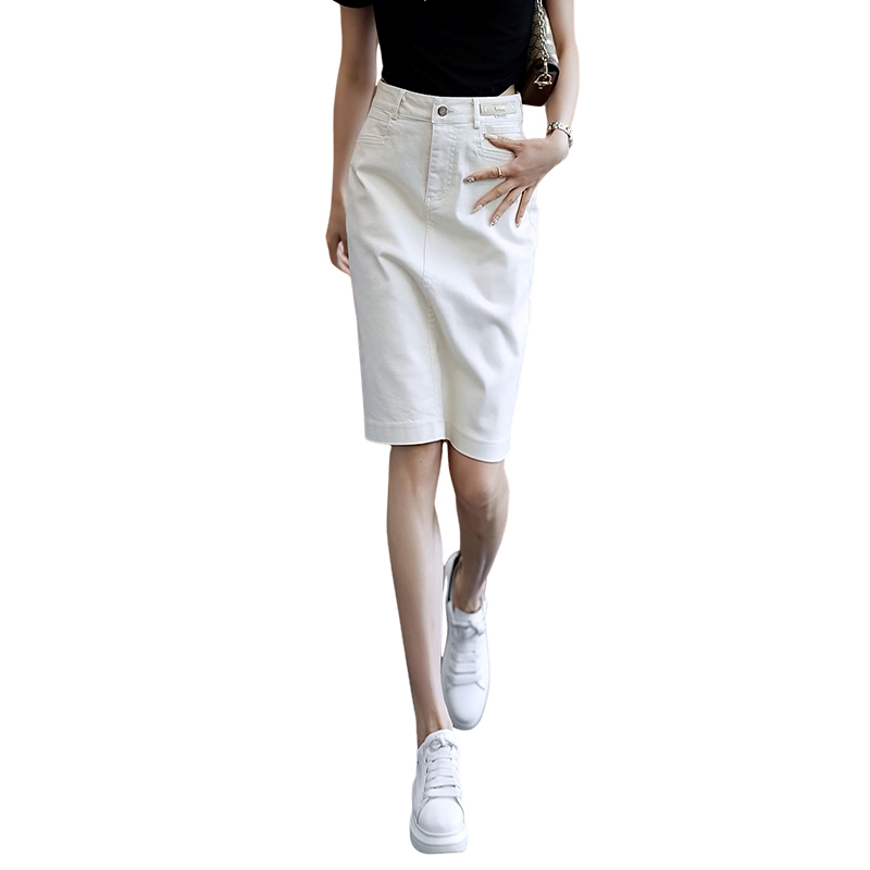 白色醋酸缎面半身月光裙女夏新款 包臀鱼尾裙气质鎏金a字裙 中长款
