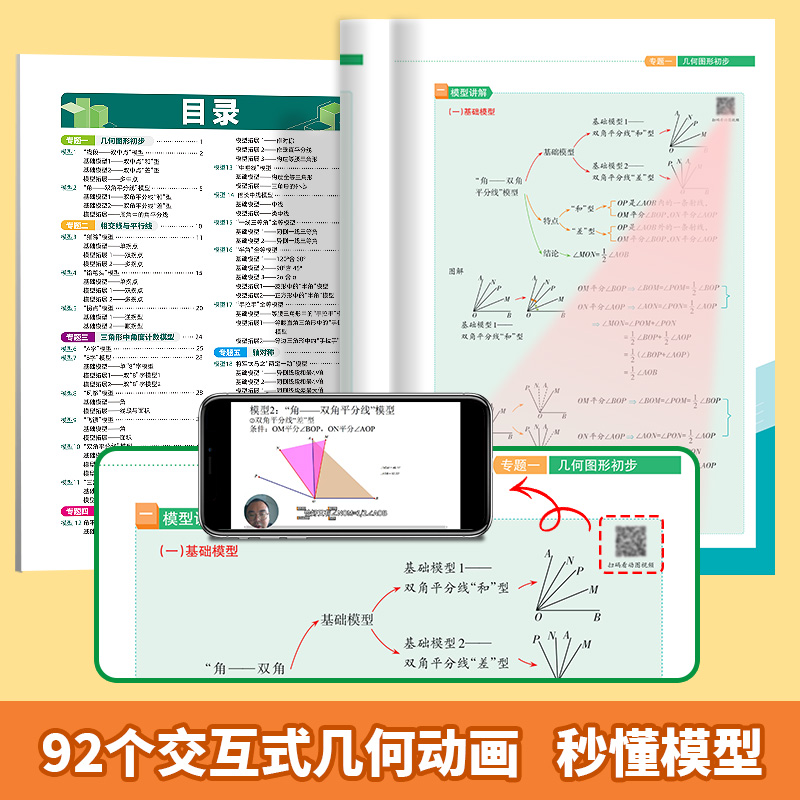 天天向上2024秋初中数学玩转几何模型专项训练思维 动画视频讲解图解法初一初二初三48立体几何画法解析 227道几何必刷题92个交互式