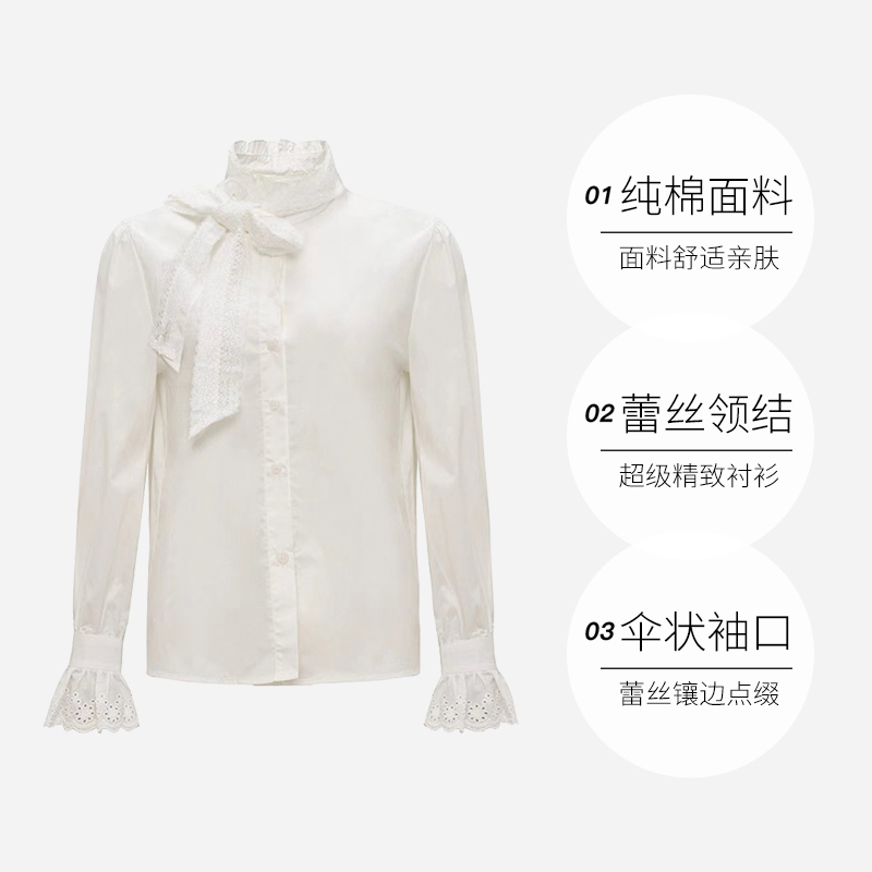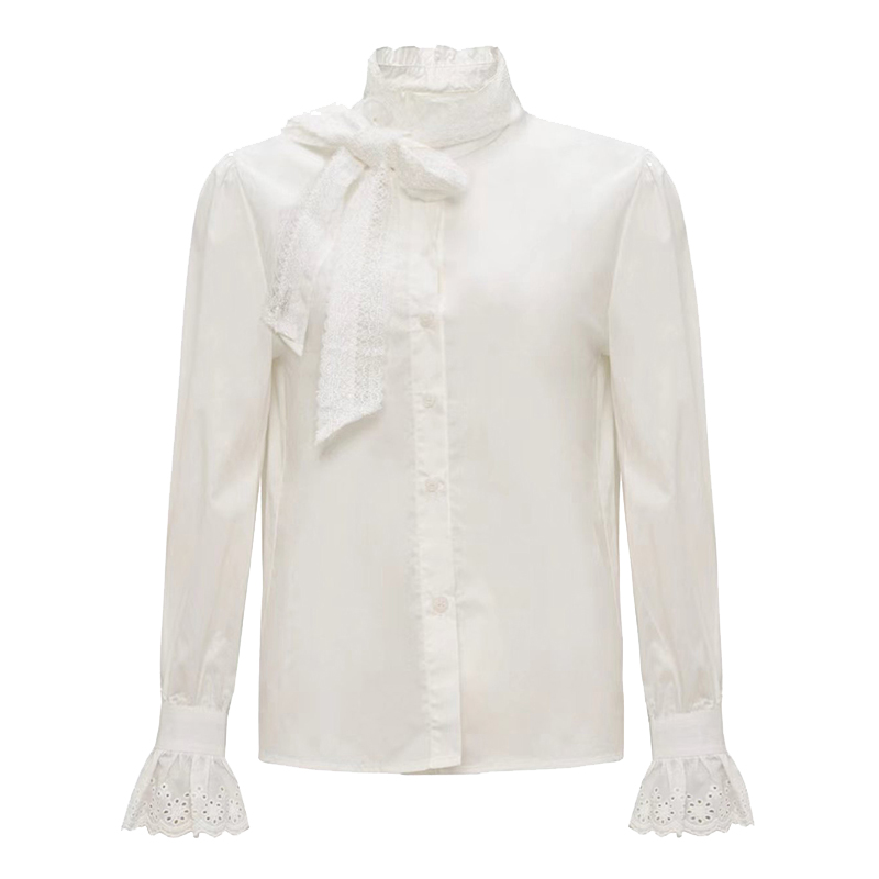 衬衫 Kentti蝴蝶结蕾丝拼接长袖 简约风舒适亲肤精致衬衫 自营